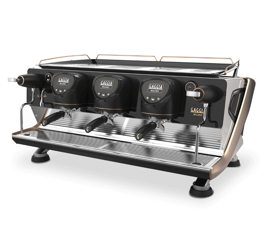 Gaggia La Reale 3 Group Traditional Coffee Machine blends Italian craftsmanship with cutting-edge barista technology to deliver premium espresso performance for high-demand cafés, restaurants, and speciality coffee venues. Its striking design — copper and steel surfaces illuminated by integrated LED lighting — makes it as much a centrepiece of your counter as a powerful workhorse.