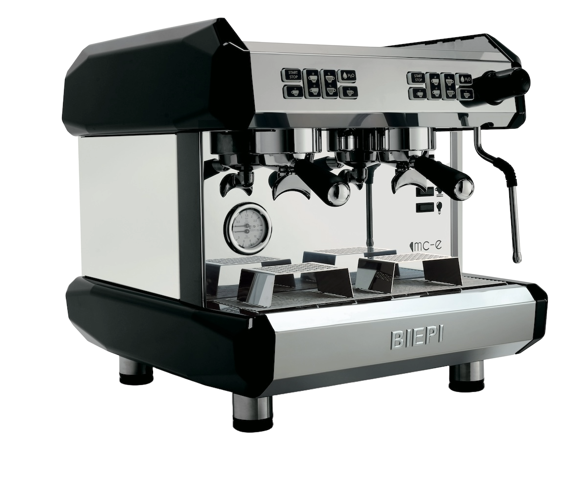 Biepi MC-E espresso machine range for commercial coffee service. Includes 2 group compact, 1 group, and 2 group configurations to suit different output requirements.